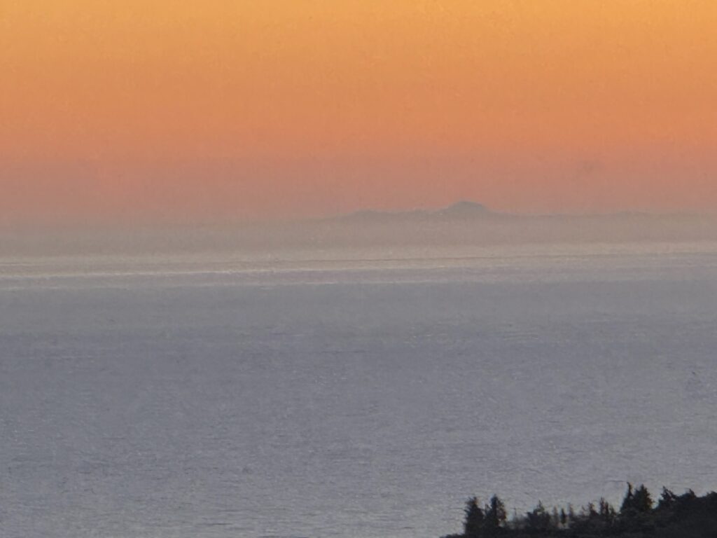 Wir konnten heute tatsächlich rüber bis nach Afrika sehen. Aber nur wenn man weiss, worauf man achten muss fällt das Gebirge am Horizont auf. Aufgenommen mit dem iPhone.