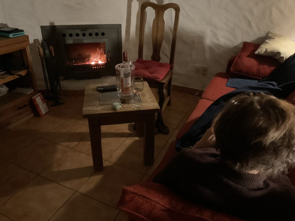Es hat tatsächlich etwas geregnet. So gab es Abendessen drinnen und ich habe tatsächlich mal den Kamin angemacht.