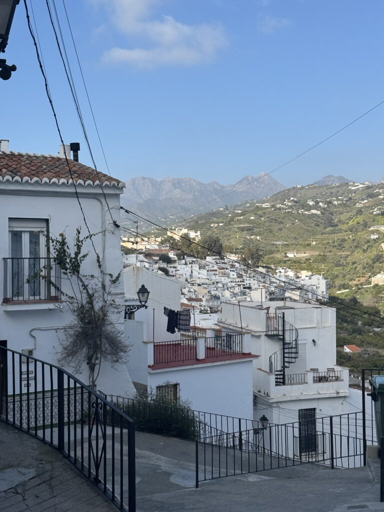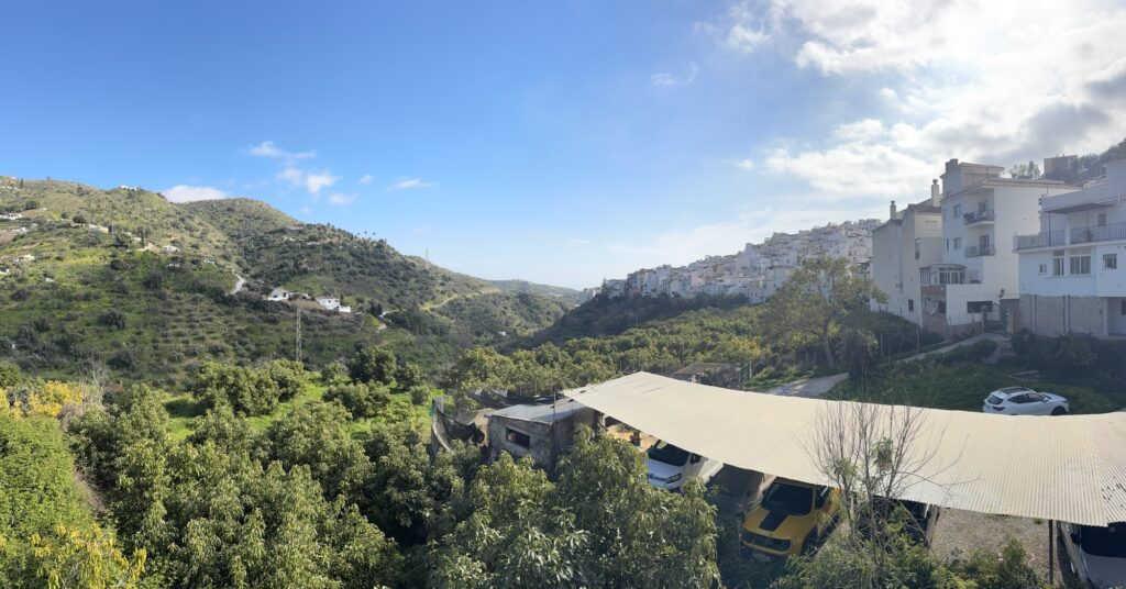 Wir wollten mal nach Jete. Über die Autobahn Richtung Nerja und weiter, dann über Molvizar in die Berge. Gut, dass der Wagen ein paar PS mehr hat. Es ging ordentlich bergauf. Die Häuser hingen beeindruckend an den steilen Bergen.