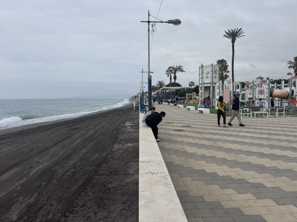 ein Spaziergang über die Promenade von Torrox. Der Strand war gerade gereinigt worden. Die Saison beginnt, es wird gestrichen und neu eingerichtet.